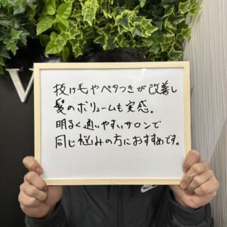 数回の施術で髪の立ち上がりやツヤが出て、写真で見ると頭頂部の地肌の見え方が明らかに変わっていて驚きました。